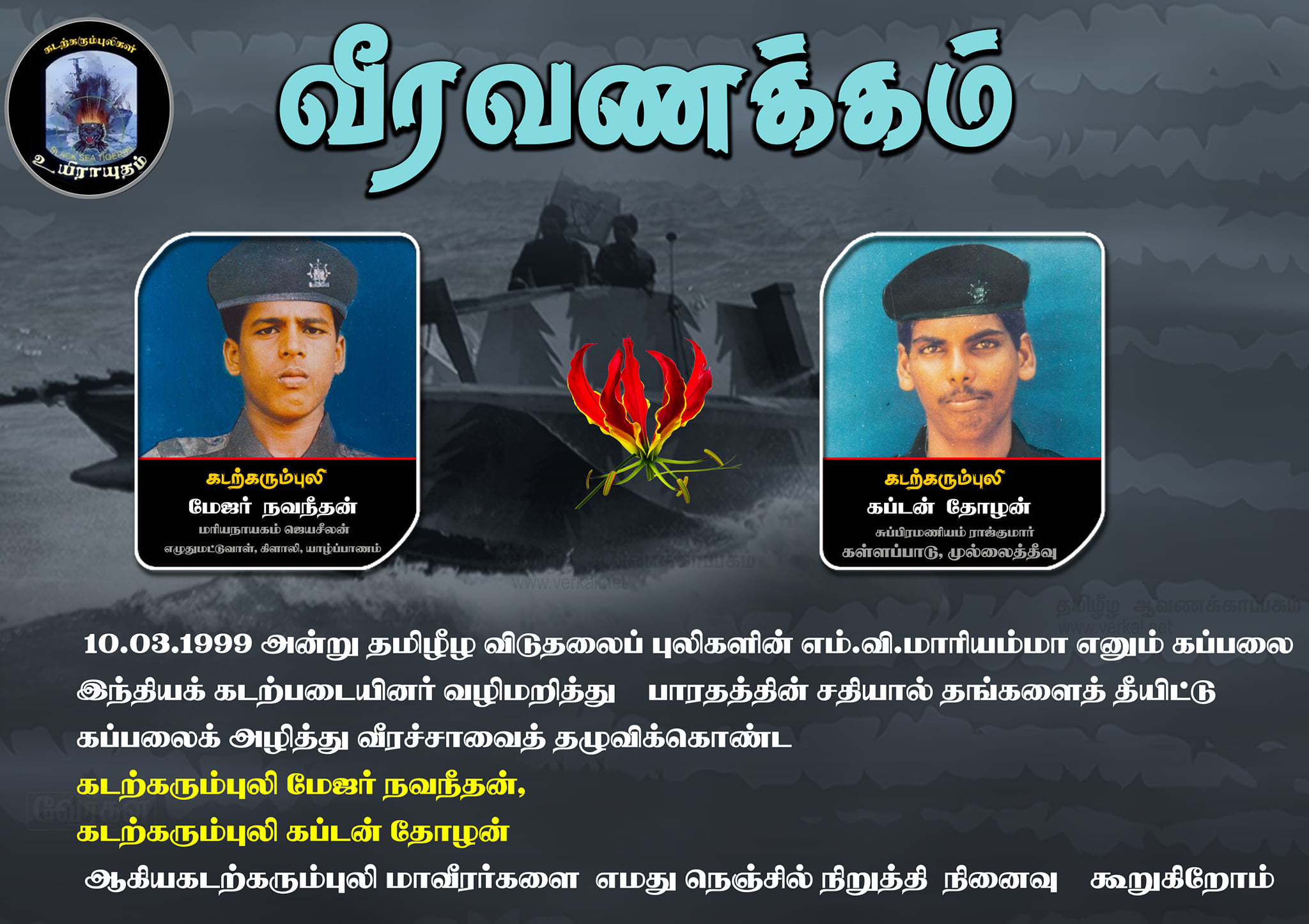 10.03.1999 அன்று சர்வதேச கடற்பரப்பில் இந்தியாவின் சதியால் வீரச்சாவினைத் தழுவிய கடற்கரும்புலிகள்.