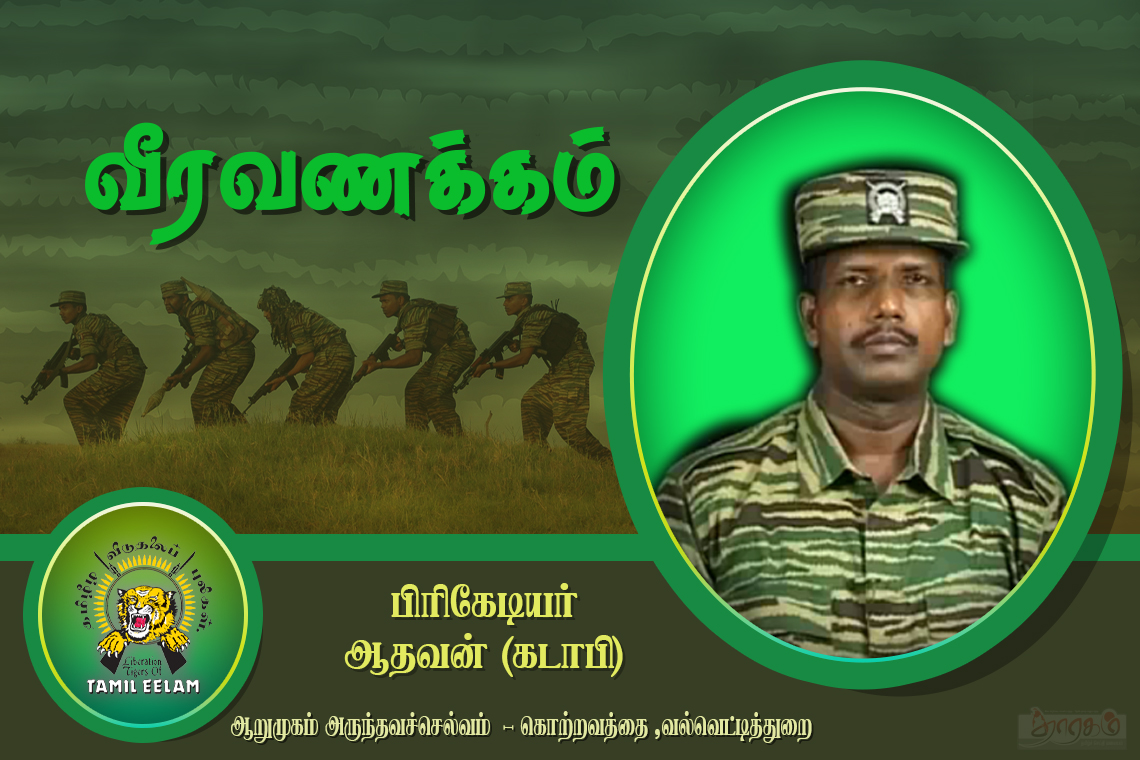 பிரிகேடியர் ஆதவன் அல்லது கடாபி அவர்கள் விடுதலைப் புலிகளின் இன்னொரு முக்கிய தளபதி. சிறிலங்கா இராணுவத்தினருக்கு எதிராக தமிழீழ தாயகத்தில் மேற்கொள்ளப்பட்ட பெரும்பாலான கரும்புலி தாக்குதல்களை திட்டமிட்டு நெறிப்படுத்திய சிறப்புநடவடிக்கைக்கான தளபதி.