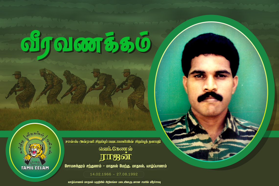 பற்றி எழுதுகிறார். சார்ள்ஸ் அன்ரனி சிறப்புப் படையின் நெருப்பாற்றின் நீச்சலில் பத்தாண்டுகள் என்ற நூலில் அவர் தொடர்பான கட்டுரைகளை நீங்கள் படிக்கலாம் எங்கட விடுதலைப் போராட்டத்தில் முதன்முதலாக போராளிகளுக்கான அதிகாரிகள் பயிற்சிக் கல்லூரி நடத்தப்பட்டது. அக்கல்லூரியின் பொறுப்பாளராக ராஜன் அண்ணனே இருந்தார்